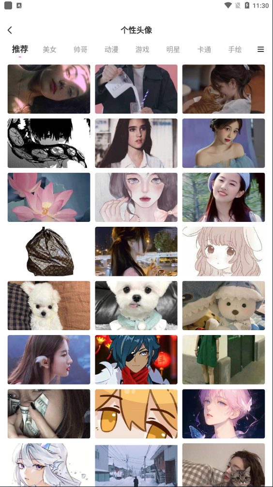 这块就是热门壁纸集中营了,现在网上流行的那些什么潮流风、韩系、二次元基本都能找到。大家看下面这张截图,分类还挺细的。