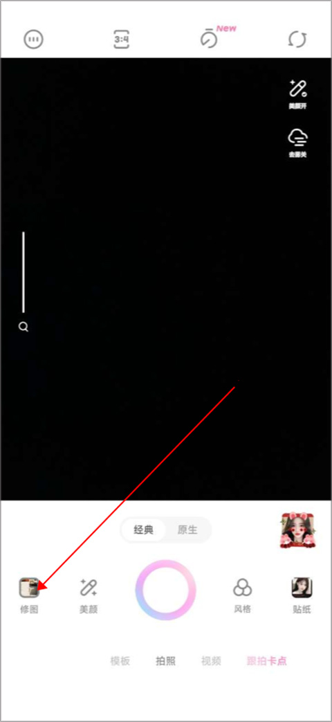 1、第一步,打开app主页,找到左下角的“修图”按钮戳一下。