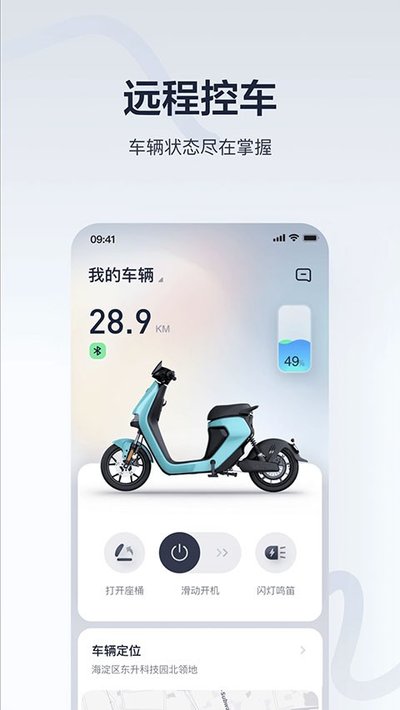 都设置好之后,再打开九号出行App,在主页上它会自动搜索附近的设备。