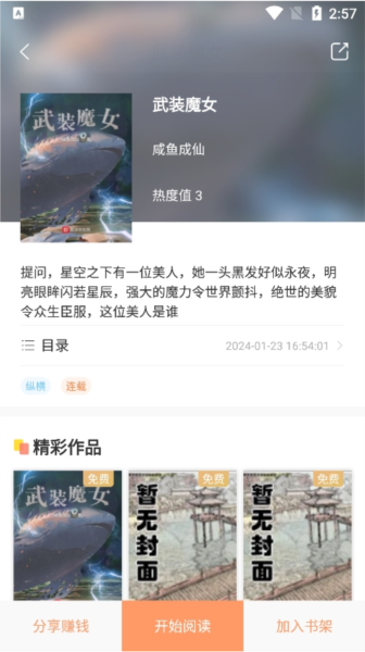 2、获取各类书籍的过程非常快捷,许多你心仪已久的作品都可以免费畅读。永久免费的模式让读者们可以毫无负担地尽情享受阅读的快乐。