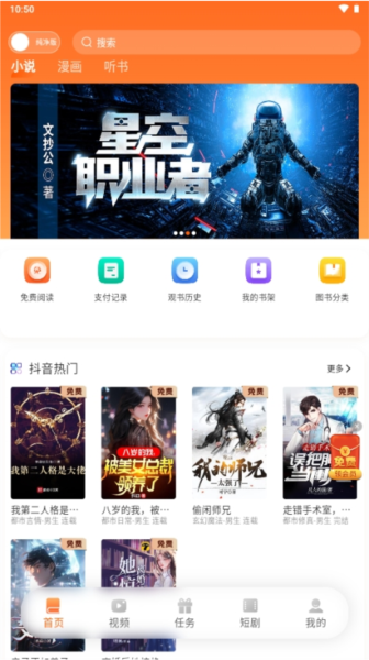 4、我们再回到主界面,点击“免费阅读”功能。在这里,你会看到一大批质量上乘的免费小说。随便点开一本就能直接开始阅读,不仅可以自由切换阅读背景、调整字体,甚至还能一键切换到听书模式,为你提供沉浸式的阅读享受。