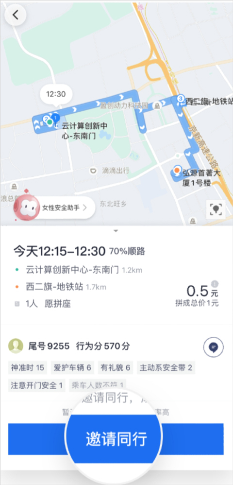 找到合适的顺路乘客后,向他发出拼座邀请,只要等待对方接受,你的拼座订单就成功了。