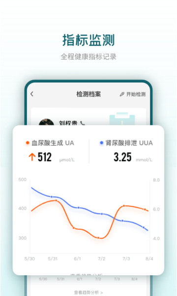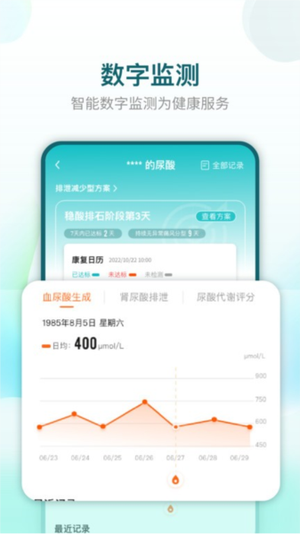 3、用户可以很方便地获取到尿酸和尿液代谢的相关数据,这让患者的治疗进展变得清晰明了,有助于实现更轻松有效的治疗过程。