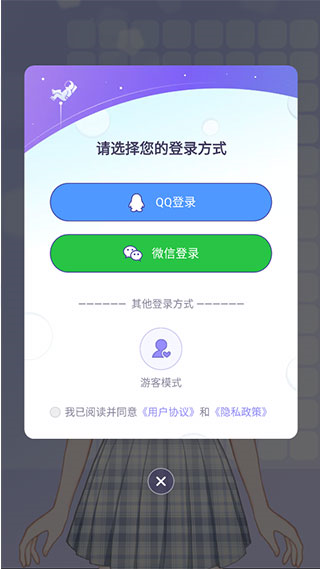 打开我的次元,选个登录方式就行,QQ、微信或者直接游客登录都可以。
