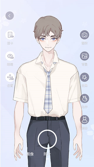 点“照相”,顾名思义就是给你搭好的造型拍照。拍完还能直接下载下来当头像或者壁纸用,挺方便。
