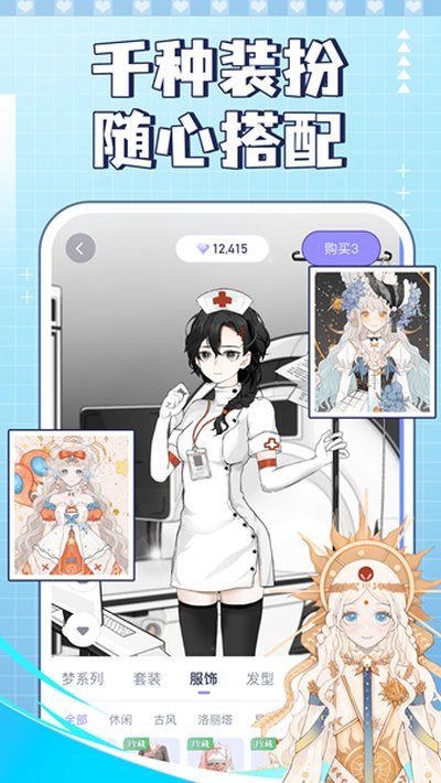 上千种服饰配件给你随便搭,基本能满足你cos各种角色的想法。从衣服、发型、妆容、鞋袜到各种小挂件,最后再配个合适的背景,一套下来就搞定了。你想让她是御姐、萌妹、小萝莉,或者想把他捏成小奶狗、小正太、小狼狗,都看你自己的想法。