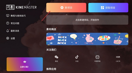 1、打开软件,第一步就是点那个大大的新建项目按钮,准备把你手机里的视频素材加进来。