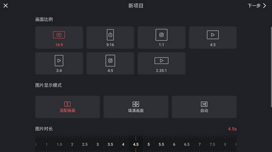 2、下一步会让你选视频画面的比例,根据你的发布平台来就行,比如做抖音就选9:16。