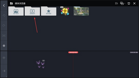 3、然后就到导入素材的界面了,你可以从它的素材商店里找,或者直接从手机相册里选你拍好的视频。