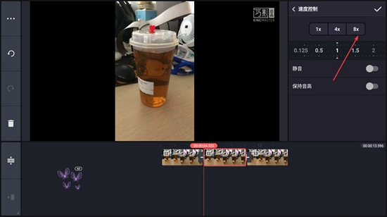 6、举个例子,我们可以用变速功能,把视频的播放速度调快,最高能拉到8倍速,做个延时效果很方便。