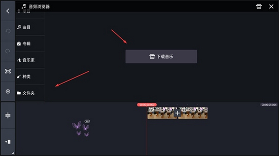 2、进到里面你就有两个选择,要么去它的商店里下载官方提供的音乐,要么就从文件夹里找你自己手机里存的歌。
