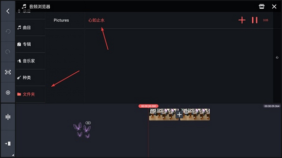 3、不管是哪种方式,找到你心仪的音乐后,点一下它右边的那个加号“+”,这首音乐就乖乖地跑到你的视频里去了。