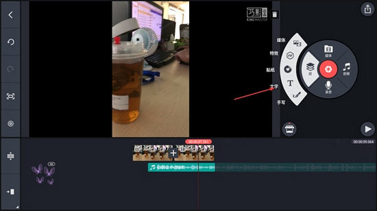 2、在弹出来的菜单里,选择那个带“T”的文字选项,这样就进入了字幕添加模式。