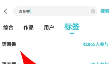 5、在标签分类里,找到并点击“语音番”这个标签。