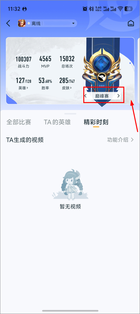 5、哦对了,想看他巅峰赛多少分,就点他段位图标下面那个“段位”按钮,可以切换到“巅峰赛”看排名。