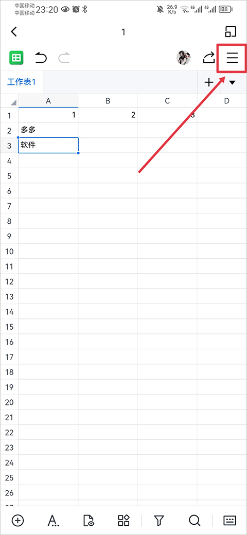 3、进入表格编辑界面后,你可以从头开始制作,也可以从下方丰富的模板库里挑一个来用。内容都填好之后,就点击右上角的那个三条横线的菜单图标。