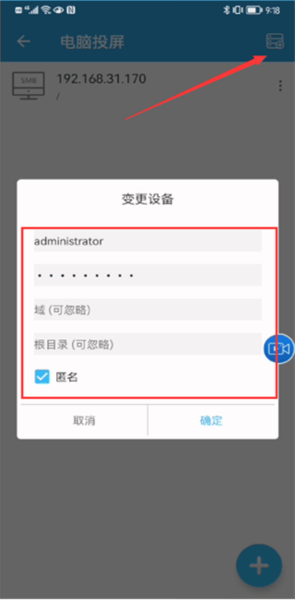 2、进入电脑投屏页面后,点击右上角的图标,准备添加你的电脑设备。