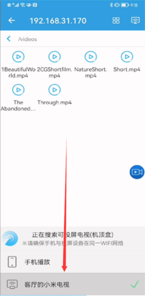 - 应用会自动发现并列出在同一个局域网内的所有可以投屏的设备,比如智能电视或者电视盒子。