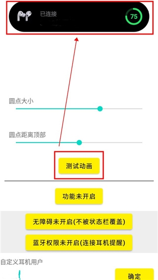 3、点一下“测试动画”,手机顶上就会弹出个效果给你看,不满意就返回上一步继续调。大家看下面这张截图,就是测试时的样子。