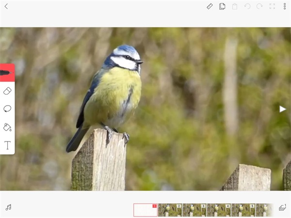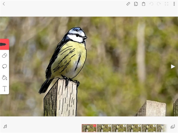 全部画完后,可以点播放按钮预览一下,小鸟就动起来啦。如果觉得哪里不满意,可以长按下面的某一帧缩略图,会弹出菜单,可以删除、复制或者调整这一帧。