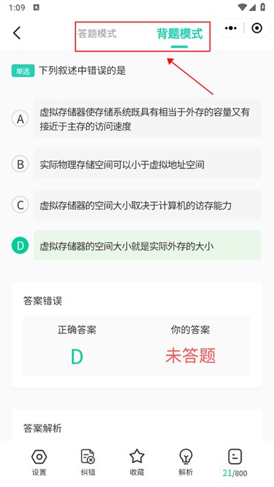 3、看到截图里这个界面没,它有两种模式。一种是“答题模式”,就是正儿八经自己做题;另一种是“背题模式”,直接给你看答案和解析,适合考前突击。
