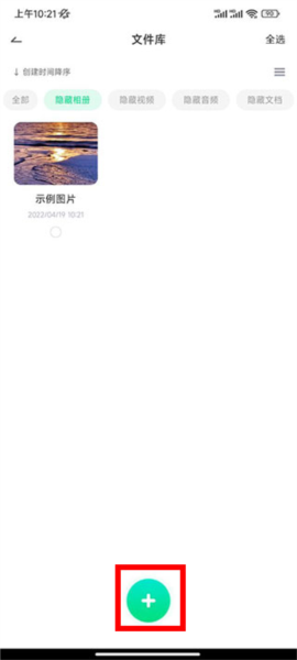 3、看到下面那个大大的【+】号了吧,点它去相册里选照片。要是想批量导入,直接点右上角的全选更方便。