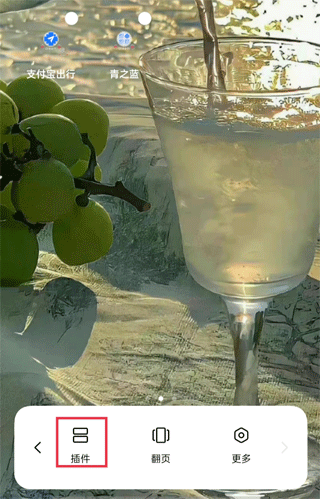 1、在手机桌面上,俩手指头向中间一捏,底下会弹出来一排选项,找到“插件”戳一下。