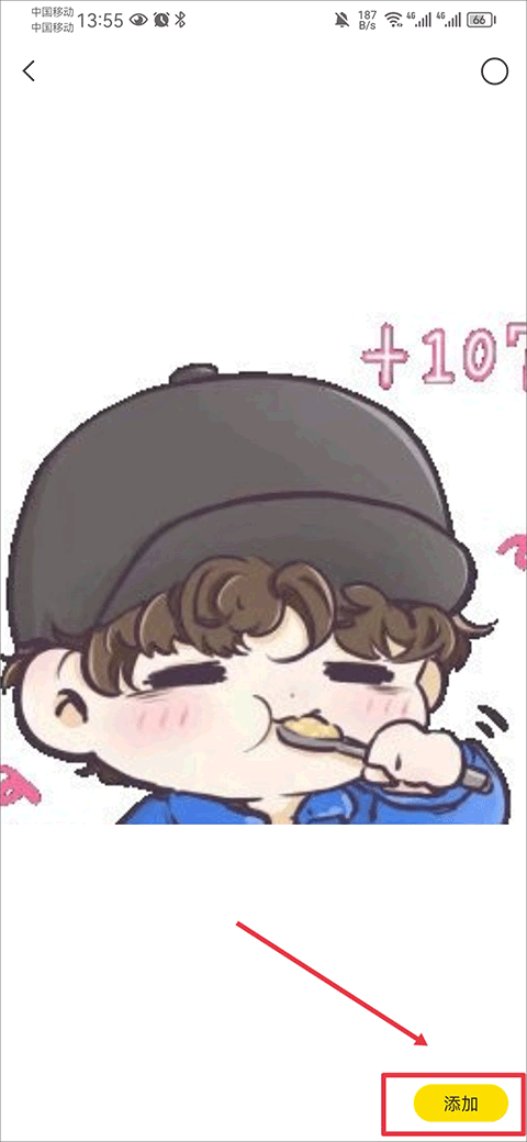 2、接着app会自动打开你的手机相册,从里面挑一张你准备上传的图片或者动图,选好后点右下角的“添加”按钮就行。