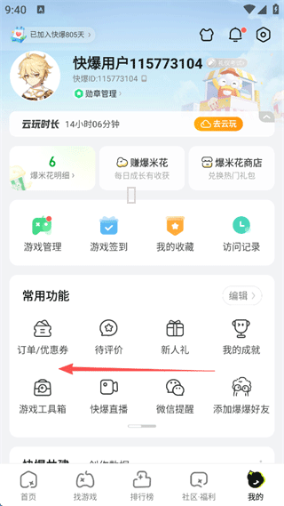 2、在个人页面里,找到“常用功能”这个横向滚动的板块,然后用手指向左滑动它。