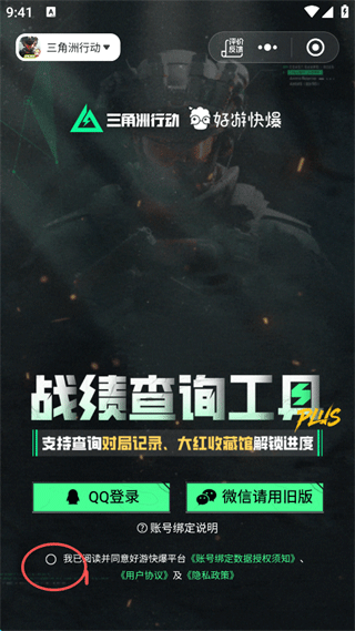 5、在跳转的页面,需要先勾选同意“我已阅读...”的相关协议,然后根据你玩游戏时使用的账号,选择用QQ或者微信登录。