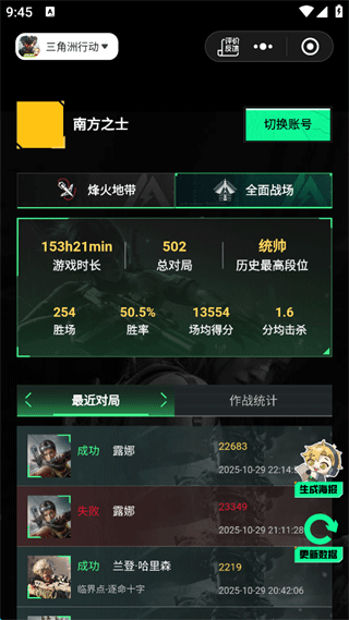 7、成功登录之后,系统就会自动加载并显示出你在这款游戏里的详细战绩数据了。