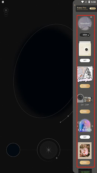 2、想要切换不同的胶片风格吗?留意一下界面右下角那个由星星和月亮组成的图标,点一下它就能打开滤镜列表。