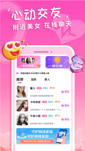 应用的主页会源源不断地为你推送优质的交友对象,这些推荐都是经过智能筛选的,你可以随时上线浏览,看看今天又有哪些有趣的新面孔出现。