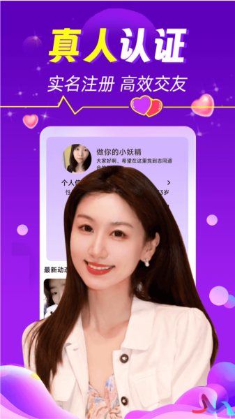 【真人认证】为了保证社区环境的真实可靠,平台要求所有用户都必须通过线上的实名认证流程。这意味着你在这里遇到的每一个人,都是经过身份核实的真实用户,让你交友更安心。