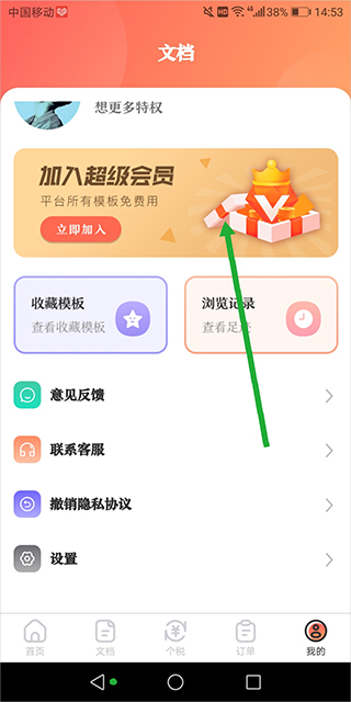 进入【我的】页面,点击顶部【加入超级会员】