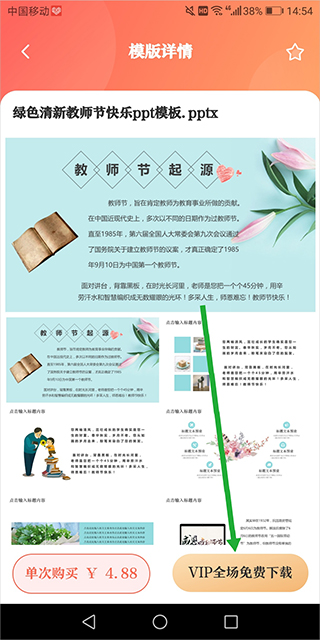 也可直接进入模板详细页面,点击底部右下角【VIP全场免费下载】