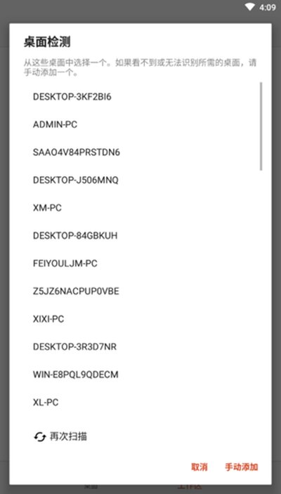 3、此时会出现如下界面,我们只需点击“重新扫描”即可,当然你也可点击手动添加。