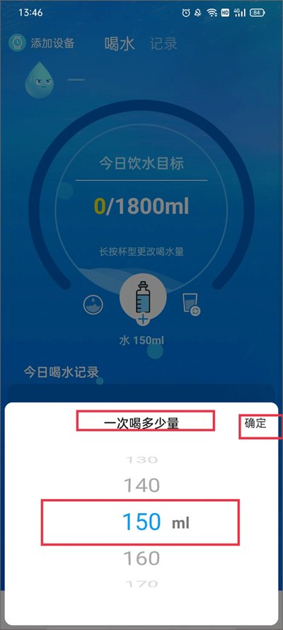 2、可根据性别、体重与作息时间,智能推荐饮水目标,并支持预设或自定义计划。