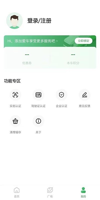 3、完成认证后就可以返回到我的页面,点击右上方的添加车辆按钮进行车辆绑定