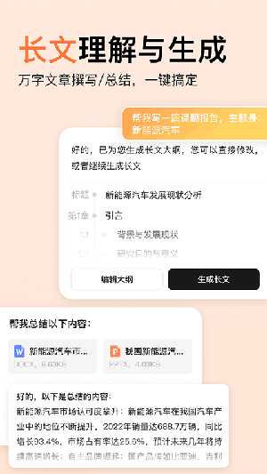 【长文生成】只需提供一个主题或一份参考文档,它就能一键为你生成结构清晰的文章大纲,并在此基础上创作出一篇格式规范、内容详实的万字长文,是处理复杂写作任务的得力助手。