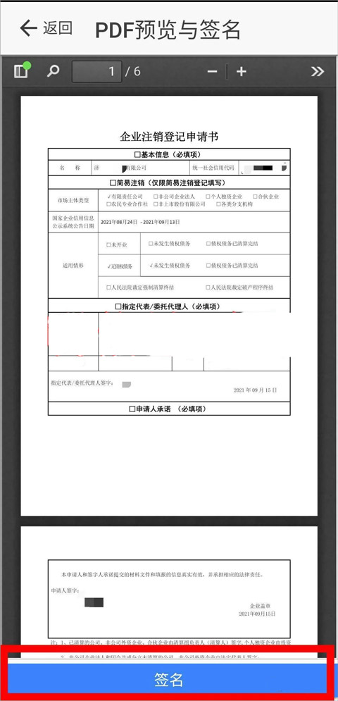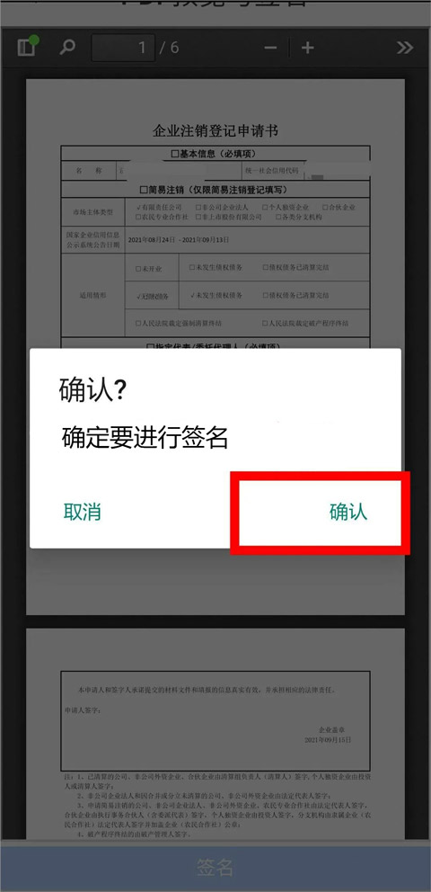 3、进去核对一下信息,没问题的话就点“签名”那个按钮。