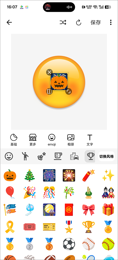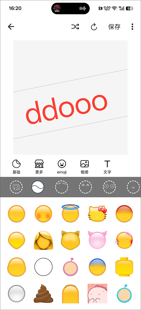 3、图片加emoji:手机里存的图也能拿来加工。软件里内置了一大堆emoji贴纸,风格还不少,可以随便换。支持把好几个emoji叠在一起,或者加点滤镜、涂鸦、文字,二次创作必备。
