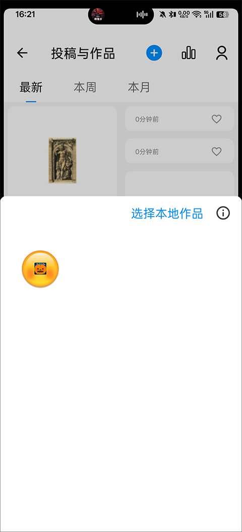去“投稿与作品”那个界面,看到右上角那个加号没,点它,然后从你做好的表情里选一个想发的就完事了。