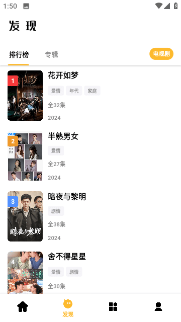 应用内会对所有电视剧的热度进行实时排行,排名靠前的都是当下最受关注的剧集,跟着榜单看准没错。