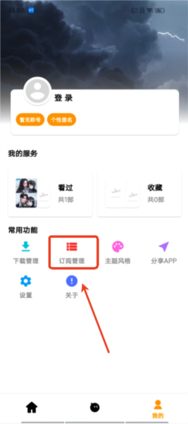 1.首先进入应用的“我的”页面,在菜单中找到并点击“订阅管理”选项。
