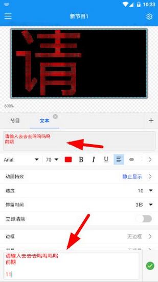 进入节目编辑界面后,你可以设置文本的具体样式、显示特效,或者调整时钟的样式以及添加一些简单的图片。需要注意的是,一个显示屏节目最多只能添加两个节目区域。