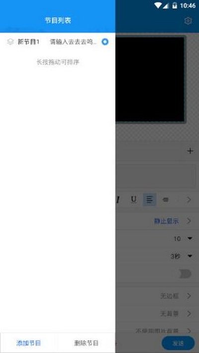 在主界面的节目列表旁边,点击“+”图标就可以添加新的节目内容了,目前支持文本、图片和时钟这三种类型。
