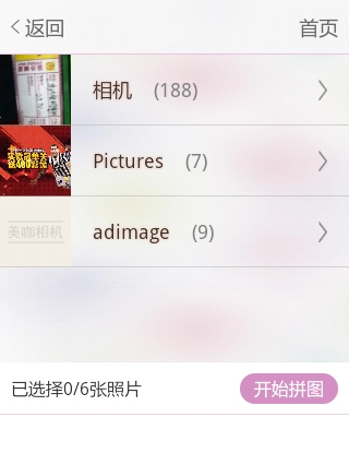 4. 在相册里开始选照片吧,一次最多能选6张,用手指点一下照片就选上了。