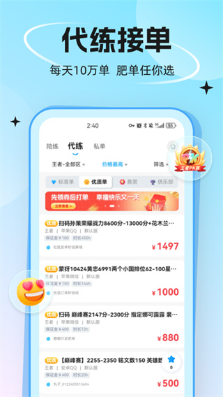 1、不同游戏的代练需求集中整理,列表中的订单将会被逐条列出,段位要求和价格都可以直接看到也让选择时更有方向;