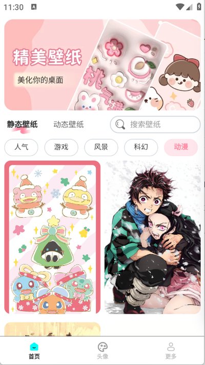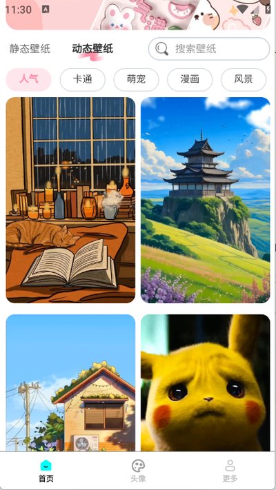 2、完成上一步后,你就会直接进入到应用的主界面。在这里,各式各样精美的壁纸和有趣的头像会呈现在你眼前,你可以随意滑动浏览,寻找让你心动的那一张。